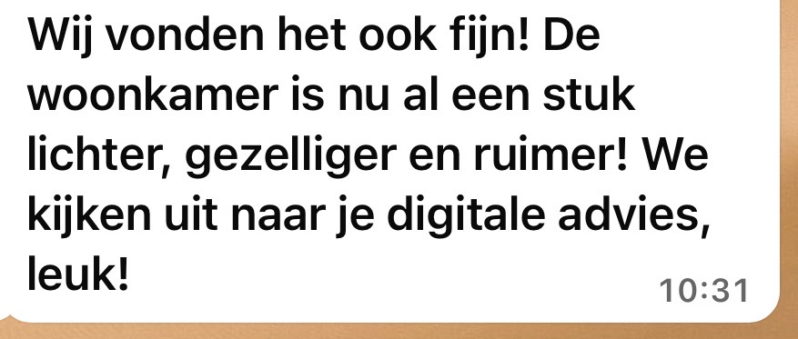 - Je hoeft het niet allemaal alleen te bedenken. Na deze sessie heb je rust, richting en concrete keuzes voor jouw huis.